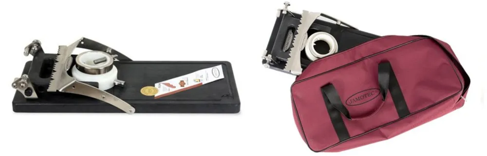 Soporte jamonero giratorio-rotatorio de diseño elegante fabricado con Poliestireno Alto Impacto (HIPS), Poliamida (PA), Acero Inoxidable y Acero Tratado. Un jamonero para uso profesional de corte de jamón y paleta español. Fabricado 100% en España con cerrajes de acero inoxidable de la mas alta calidad.
